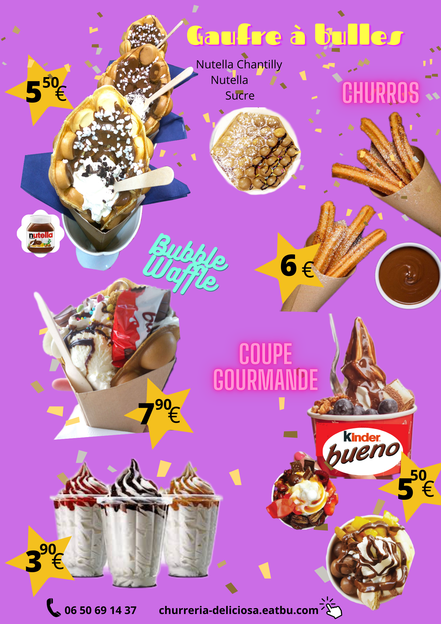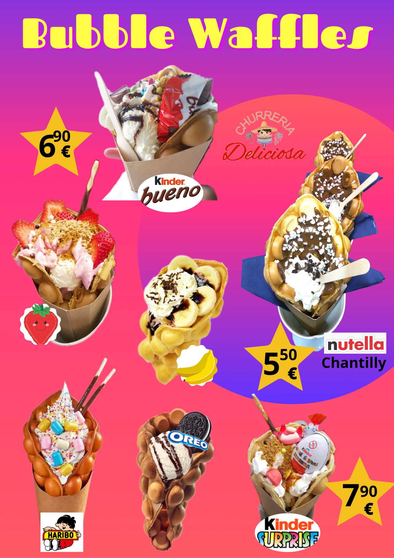 Bubble waffles, Churros, Crêpes, Glaces italiennes