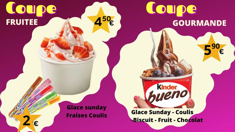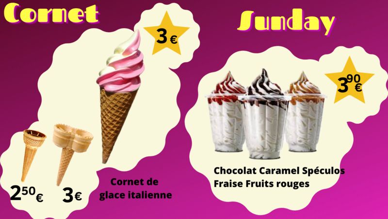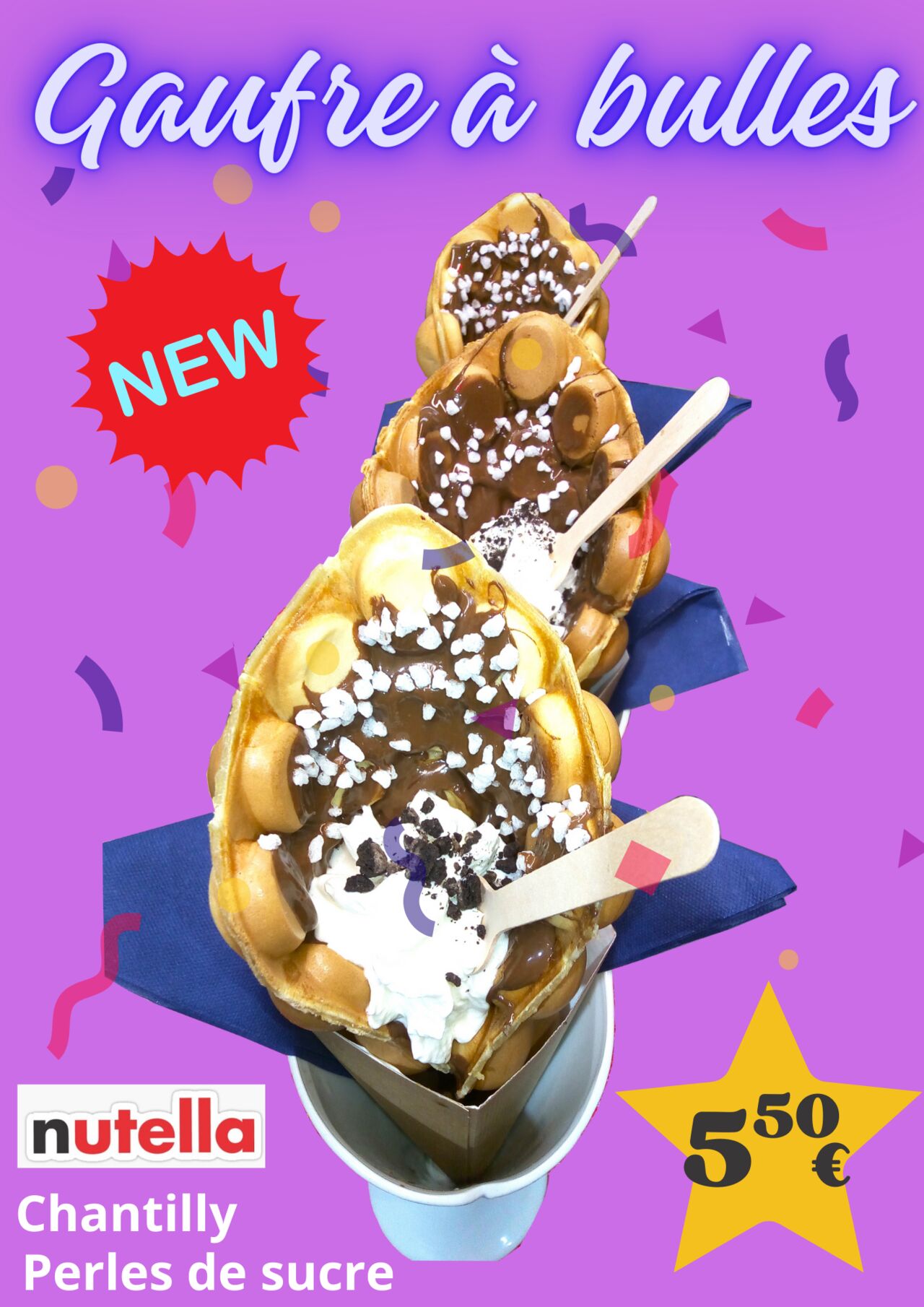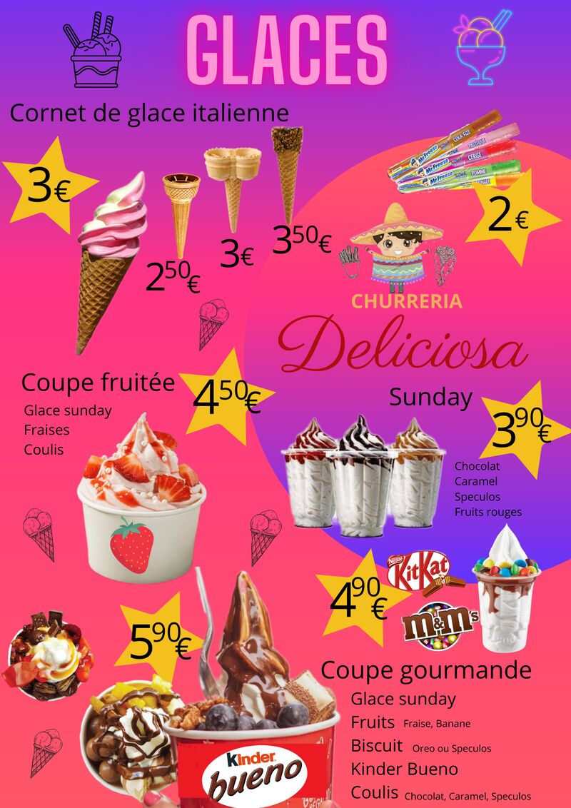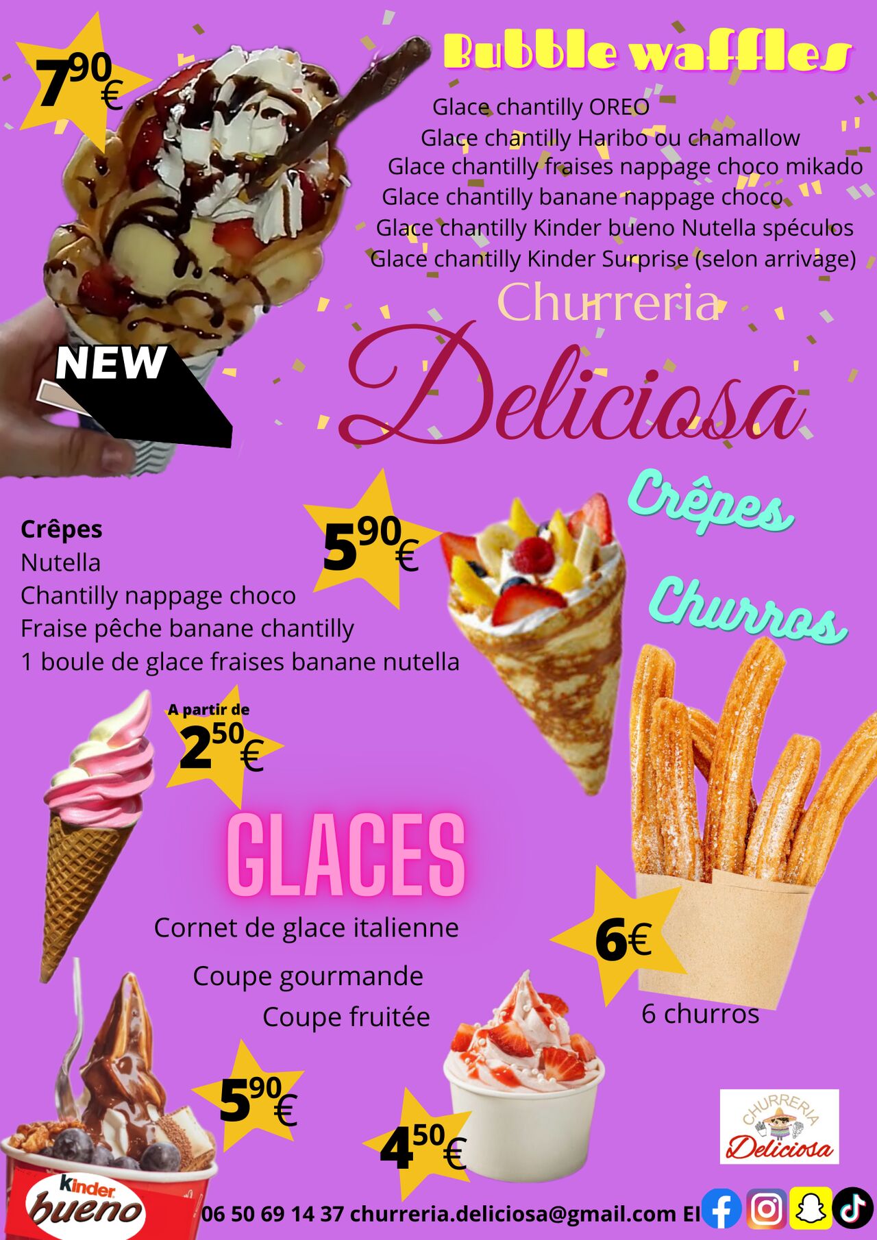 Bubble waffles, Churros, Crêpes, Glaces italiennes